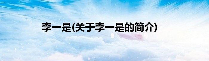 本文关于李一是的简介就讲解完毕,希望对大家有所帮助。