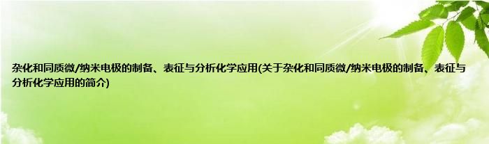 大家好,杂化和同质微/纳米电极的制备、表征与分析化学应用,关于杂化和同质微/纳米电极的制备、表征与分析化学应用的简介很多人还不知道,现在让我们一起来看看吧!