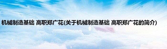 机械制造基础高职郑广花(关于机械制造基础高职郑广花的简介)