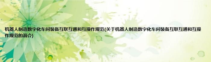 本文关于机器人制造数字化车间装备互联互通和互操作规范的简介就讲解完毕,希望对大家有所帮助。