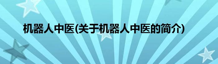 本文关于机器人中医的简介就讲解完毕,希望对大家有所帮助。