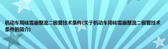本文关于机动车用硅雪崩整流二极管技术条件的简介就讲解完毕,希望对大家有所帮助。