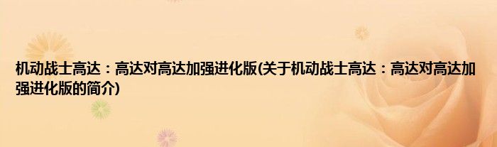 大家好,机动战士高达:高达对高达加强进化版,关于机动战士高达:高达对高达加强进化版的简介很多人还不知道,现在让我们一起来看看吧!