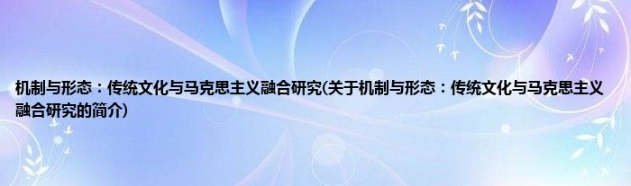 大家好,机制与形态:传统文化与马克思主义融合研究,关于机制与形态:传统文化与马克思主义融合研究的简介很多人还不知道,现在让我们一起来看看吧!