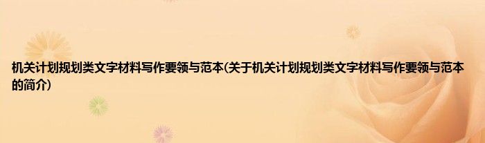 本文关于机关计划规划类文字材料写作要领与范本的简介就讲解完毕,希望对大家有所帮助。
