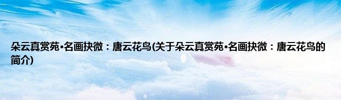 本文关于朵云真赏苑·名画抉微:唐云花鸟的简介就讲解完毕,希望对大家有所帮助。