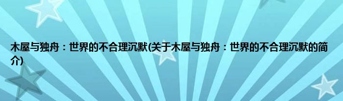 本文关于木屋与独舟:世界的不合理沉默的简介就讲解完毕,希望对大家有所帮助。