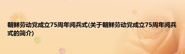 大家好,朝鲜劳动党成立75周年阅兵式,关于朝鲜劳动党成立75周年阅兵式的简介很多人还不知道,现在让我们一起来看看吧!