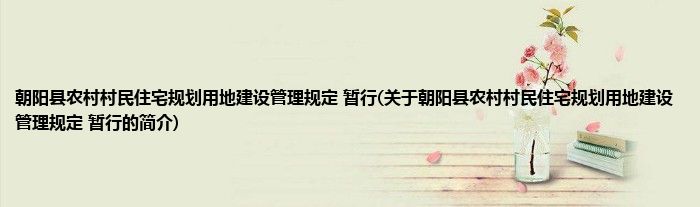 大家好,朝阳县农村村民住宅规划用地建设管理规定 暂行,关于朝阳县农村村民住宅规划用地建设管理规定 暂行的简介很多人还不知道,现在让我们一起来看看吧!