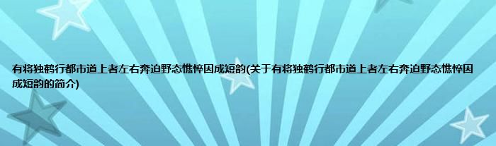 本文关于有将独鹤行都市道上者左右奔迫野态憔悴因成短韵的简介就讲解完毕,希望对大家有所帮助。