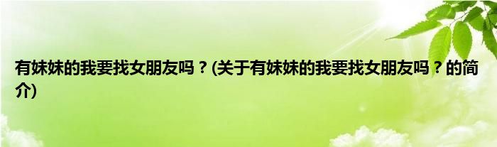 大家好,有妹妹的我要找女朋友吗?,关于有妹妹的我要找女朋友吗?的简介很多人还不知道,现在让我们一起来看看吧!