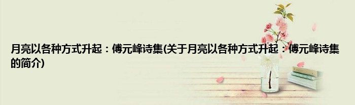 本文关于月亮以各种方式升起:傅元峰诗集的简介就讲解完毕,希望对大家有所帮助。