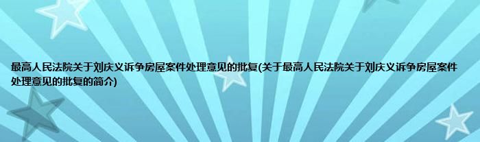 大家好,最高人民法院关于刘庆义诉争房屋案件处理意见的批复,关于最高人民法院关于刘庆义诉争房屋案件处理意见的批复的简介很多人还不知道,现在让我们一起来看看吧!