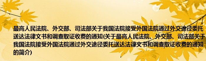 本文关于最高人民法院、外交部、司法部关于我国法院接受外国法院通过外交途径委托送达法律文书和调查取证收费的通知的简介就讲解完毕,希望对大家有所帮助。