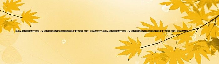 本文关于最高人民检察院关于印发《人民检察院侦查贪污贿赂犯罪案件工作细则 试行》的通知的简介就讲解完毕,希望对大家有所帮助。