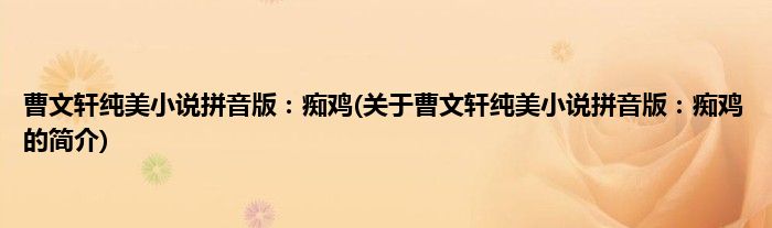 本文关于曹文轩纯美小说拼音版:痴鸡的简介就讲解完毕,希望对大家有所帮助。