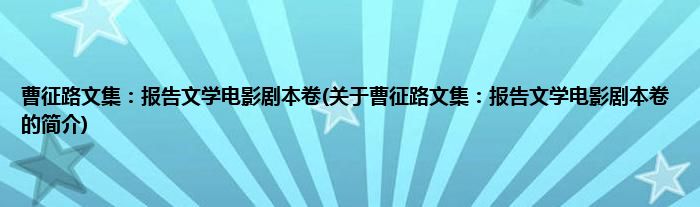 本文关于曹征路文集:报告文学电影剧本卷的简介就讲解完毕,希望对大家有所帮助。