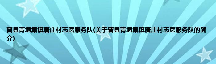 本文关于曹县青堌集镇唐庄村志愿服务队的简介就讲解完毕,希望对大家有所帮助。
