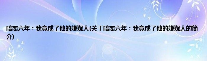 本文关于暗恋六年:我竟成了他的嫌疑人的简介就讲解完毕,希望对大家有所帮助。