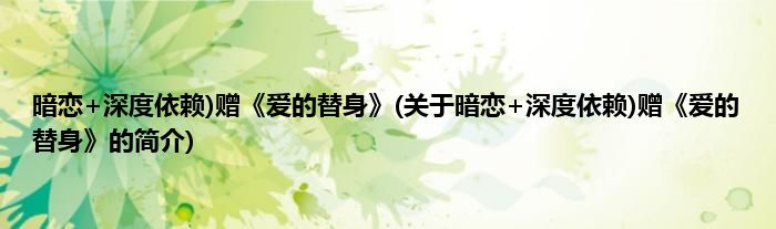 本文关于暗恋+深度依赖)赠《爱的替身》的简介就讲解完毕,希望对大家有所帮助。