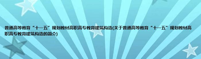1、 《普通高等教育“十一五”规划教材高职高专教育建筑构造》是2009年02月中国电力出版社出版的图书,作者是闫培明。