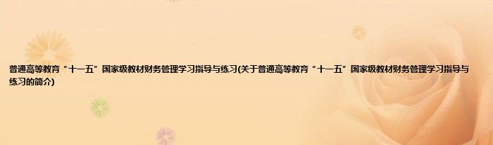 本文关于普通高等教育“十一五”国家级教材财务管理学习指导与练习的简介就讲解完毕,希望对大家有所帮助。