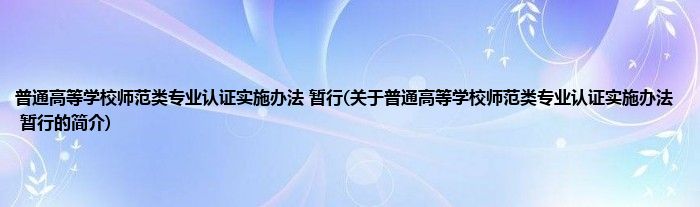 大家好,普通高等学校师范类专业认证实施办法 暂行,关于普通高等学校师范类专业认证实施办法 暂行的简介很多人还不知道,现在让我们一起来看看吧!