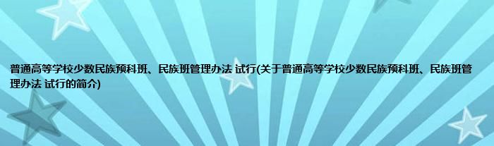 本文关于普通高等学校少数民族预科班、民族班管理办法 试行的简介就讲解完毕,希望对大家有所帮助。