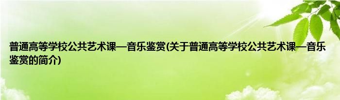 本文关于普通高等学校公共艺术课—音乐鉴赏的简介就讲解完毕,希望对大家有所帮助。