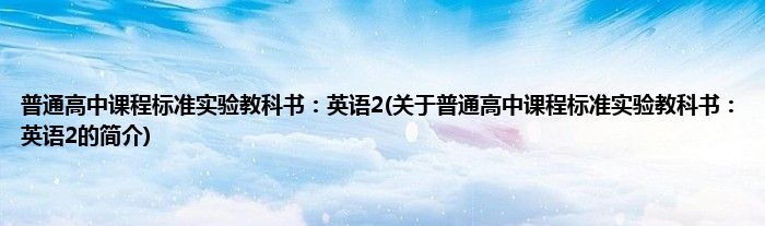 本文关于普通高中课程标准实验教科书:英语2的简介就讲解完毕,希望对大家有所帮助。