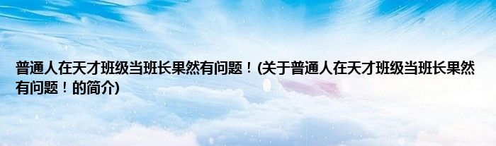 本文关于普通人在天才班级当班长果然有问题!的简介就讲解完毕,希望对大家有所帮助。