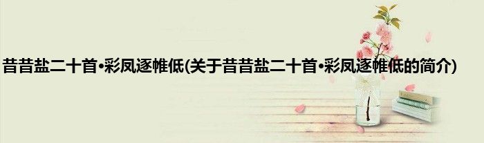 1、 《昔昔盐二十首·彩凤逐帷低》是唐代赵嘏创作的诗词。