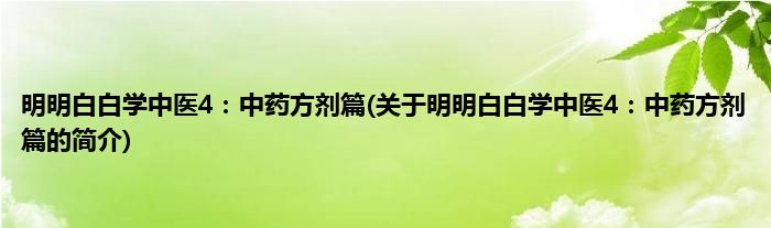 大家好,明明白白学中医4:中药方剂篇,关于明明白白学中医4:中药方剂篇的简介很多人还不知道,现在让我们一起来看看吧!