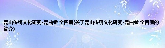 本文关于昆山传统文化研究·昆曲卷 全四册的简介就讲解完毕,希望对大家有所帮助。