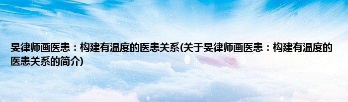本文关于旻律师画医患:构建有温度的医患关系的简介就讲解完毕,希望对大家有所帮助。