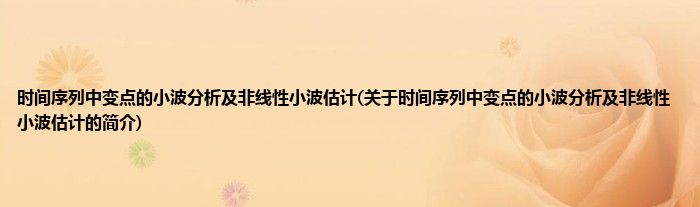 时间序列中变点的小波分析及非线性小波估计(关于时间序列中变点的小波分析及非线性小波估计的简介)