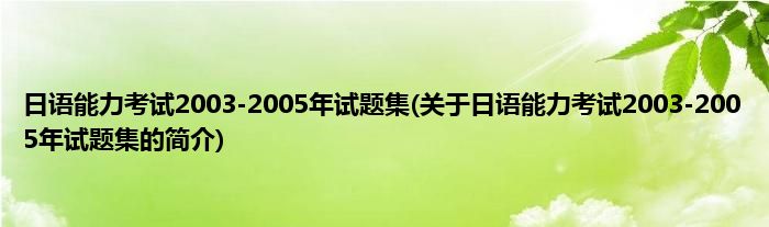 本文关于日语能力考试2003-2005年试题集的简介就讲解完毕,希望对大家有所帮助。
