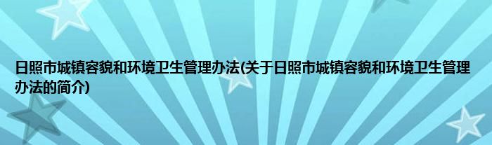 大家好,日照市城镇容貌和环境卫生管理办法,关于日照市城镇容貌和环境卫生管理办法的简介很多人还不知道,现在让我们一起来看看吧!
