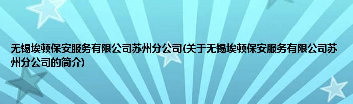 本文关于无锡埃顿保安服务有限公司苏州分公司的简介就讲解完毕,希望对大家有所帮助。