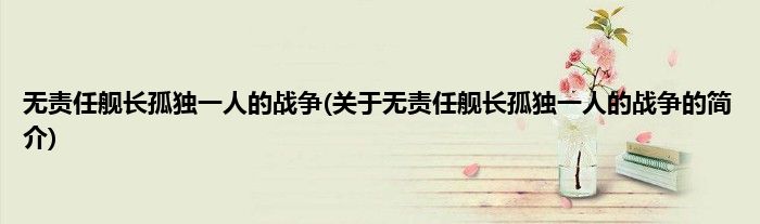 本文关于无责任舰长孤独一人的战争的简介就讲解完毕,希望对大家有所帮助。