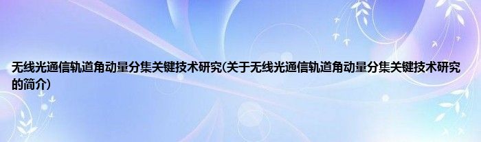 本文关于无线光通信轨道角动量分集关键技术研究的简介就讲解完毕,希望对大家有所帮助。