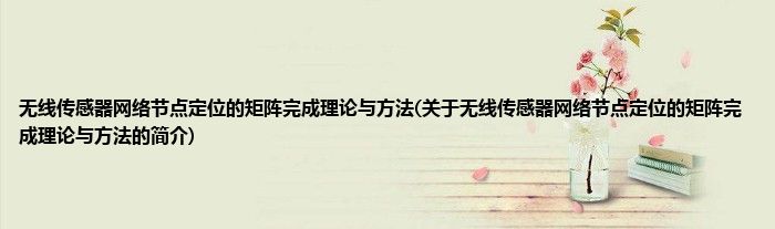 无线传感器网络节点定位的矩阵完成理论与方法(关于无线传感器网络节点定位的矩阵完成...