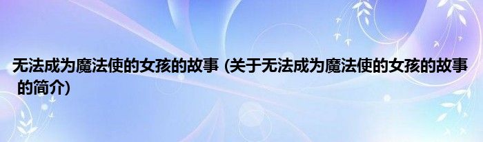 本文关于无法成为魔法使的女孩的故事。的简介就讲解完毕,希望对大家有所帮助。