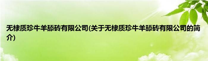 本文关于无棣质珍牛羊舔砖有限公司的简介就讲解完毕,希望对大家有所帮助。