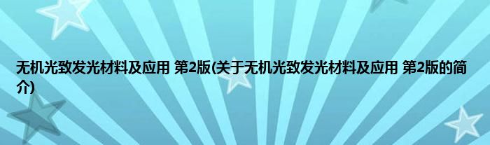 1、 《无机光致发光材料及应用(第2版)》是2011年7月1日化学工业出版社出版的图书。