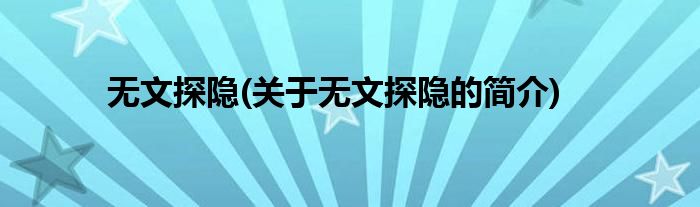 本文关于无文探隐的简介就讲解完毕,希望对大家有所帮助。