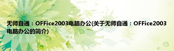 本文关于无师自通:OFFice2003电脑办公的简介就讲解完毕,希望对大家有所帮助。
