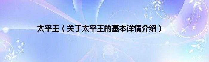 本文关于太平王的基本详情介绍就讲解完毕,希望对大家有所帮助。