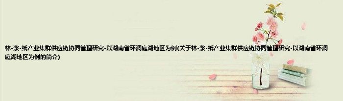 本文关于林-浆-纸产业集群供应链协同管理研究-以湖南省环洞庭湖地区为例的简介就讲解完毕,希望对大家有所帮助。