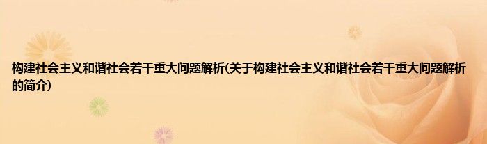 大家好,构建社会主义和谐社会若干重大问题解析,关于构建社会主义和谐社会若干重大问题解析的简介很多人还不知道,现在让我们一起来看看吧!